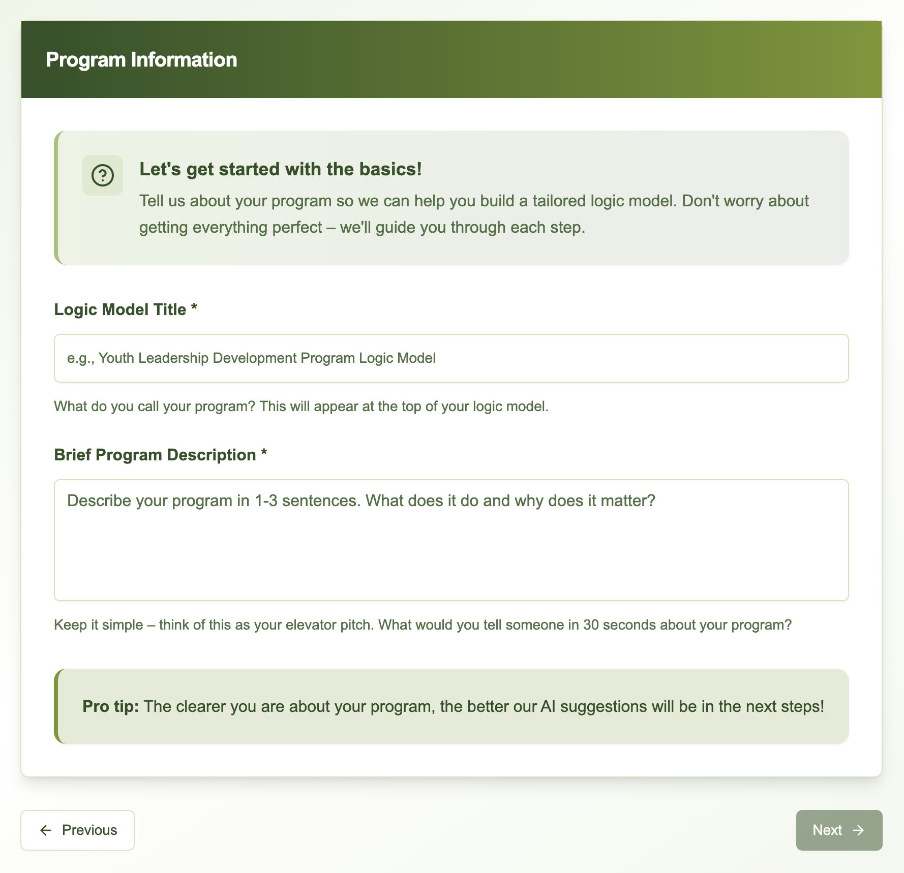 LoMA serves as your thought partner in the early stages of logic model development, helping you move from blank page to comprehensive first draft quickly.